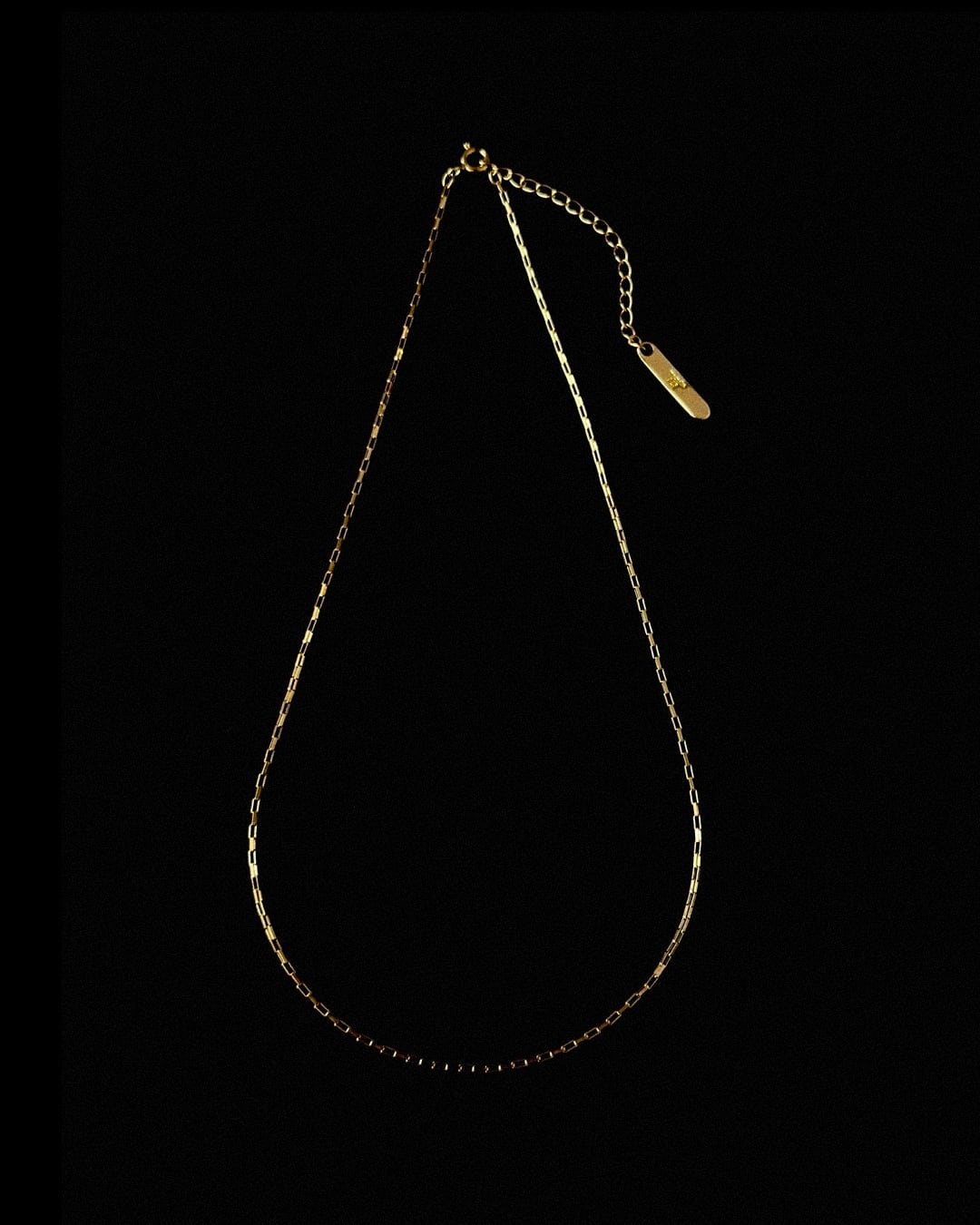 スクエアタイプのベネチアンチェーンネックレス 5cmのアジャスター付きのため短めのチョーカーサイズから お洋服の上からでもご着用いただける長さまで調整が可能です ネックレスチェーン単体でも チャームシリーズと組み合わせても 様々なご着用方法でお楽しみいただけます material K18 gold plated (silver925) size(約) 37-42cm