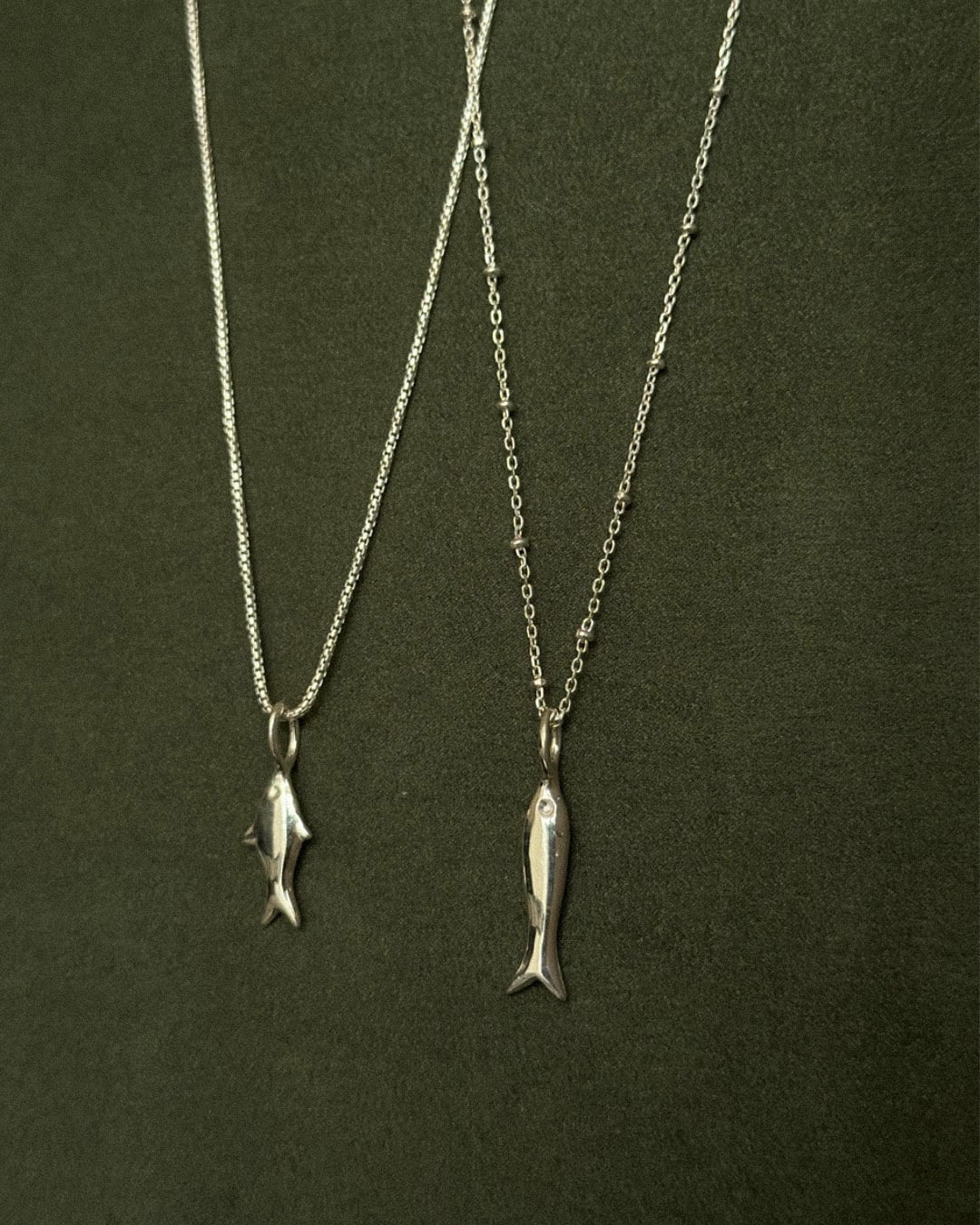ぷっくりとしたフォルムが愛らしい小さな魚のチャーム 対象ネックレス ・dotline chain necklace ・prism chain necklace ・mellow box chain necklace material silver925
